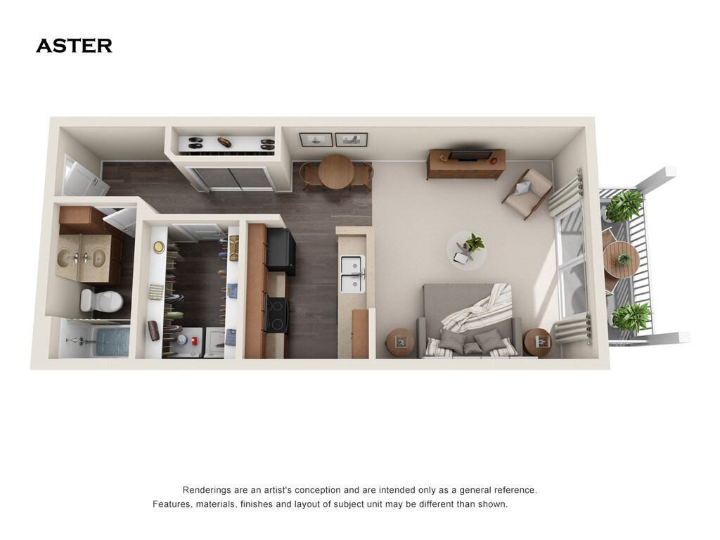 Apartment Model: Aster$1,195Studio, 1 Bath, 576 sq ftUnavailable![]()