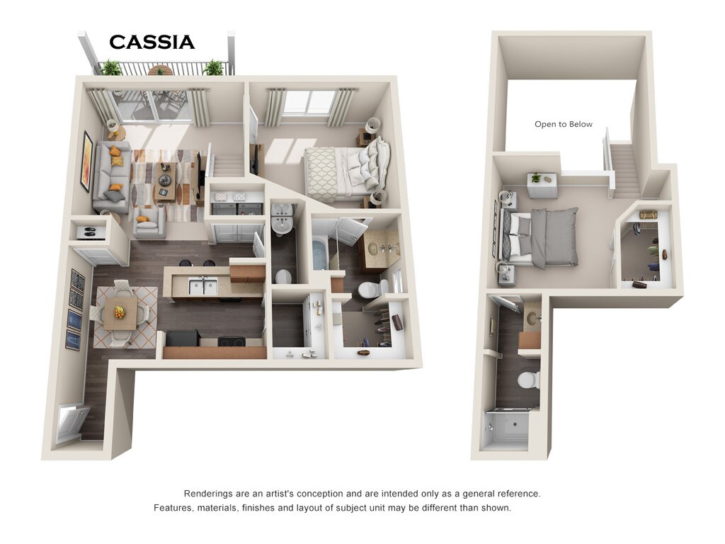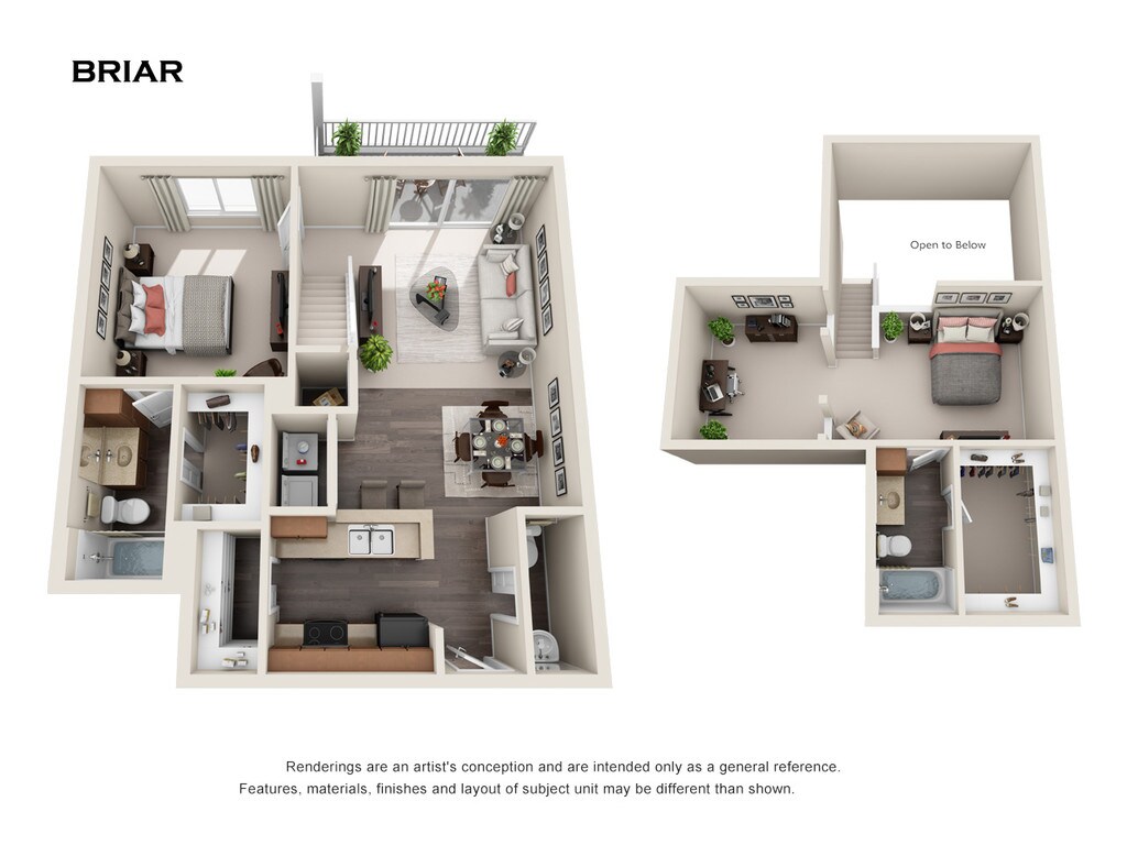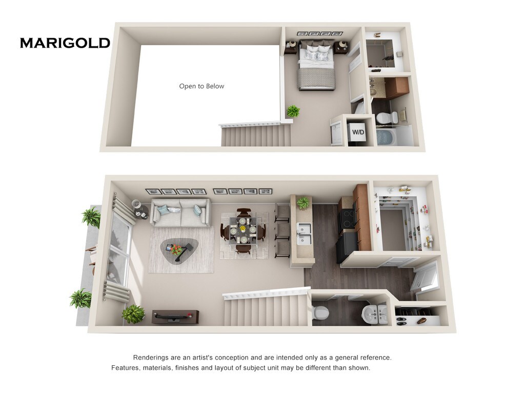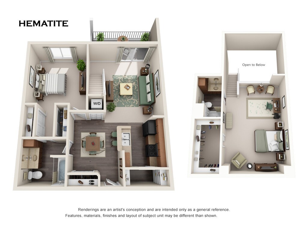 1 Bed, 1.5 Baths, 850 sq ftModel Gallery
