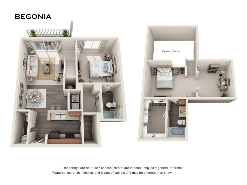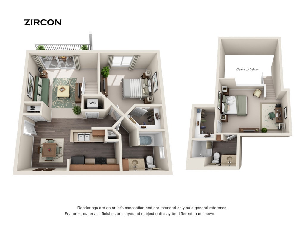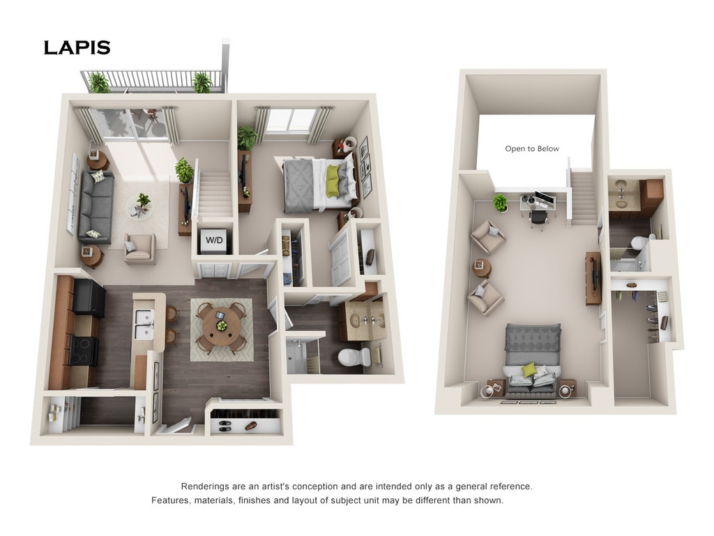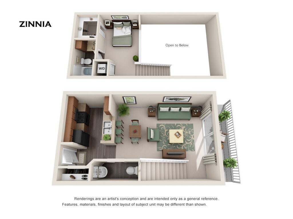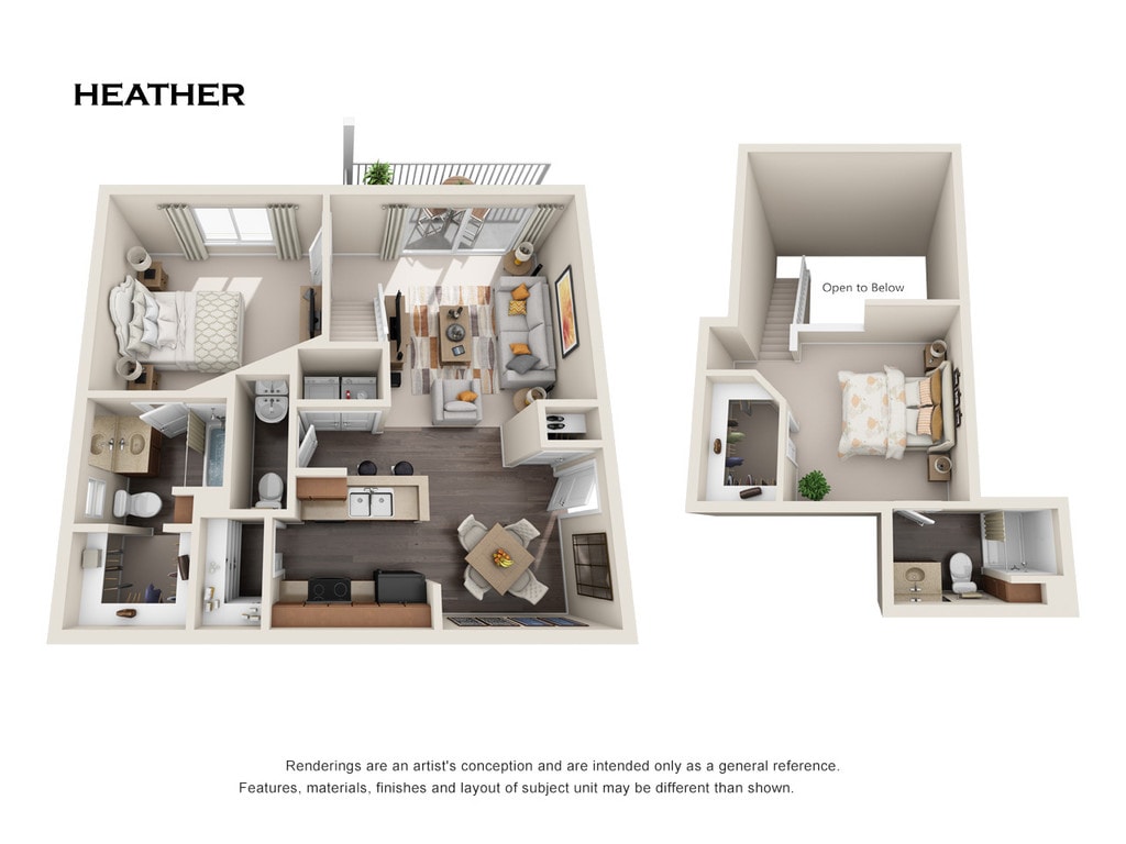 1 Bed, 1.5 Baths, 850 sq ftModel Gallery