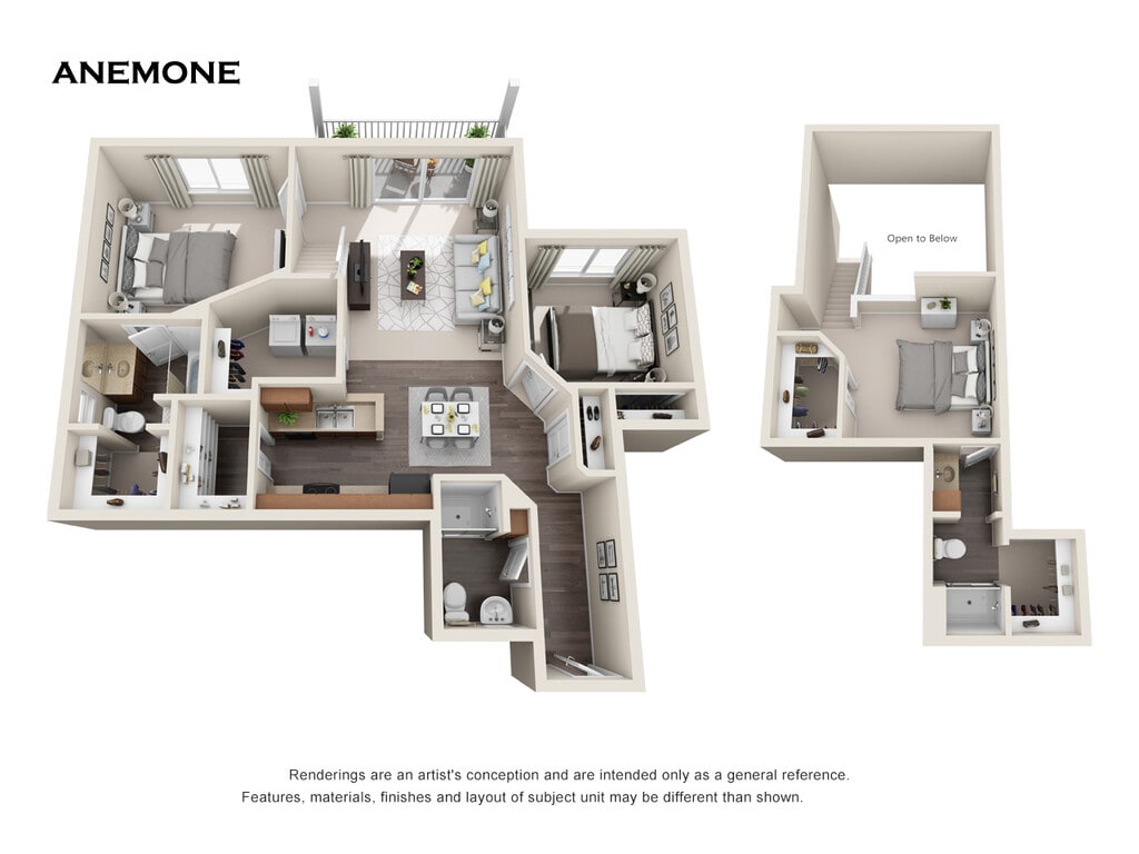 1 Bed, 1.5 Baths, 836 sq ftModel Gallery