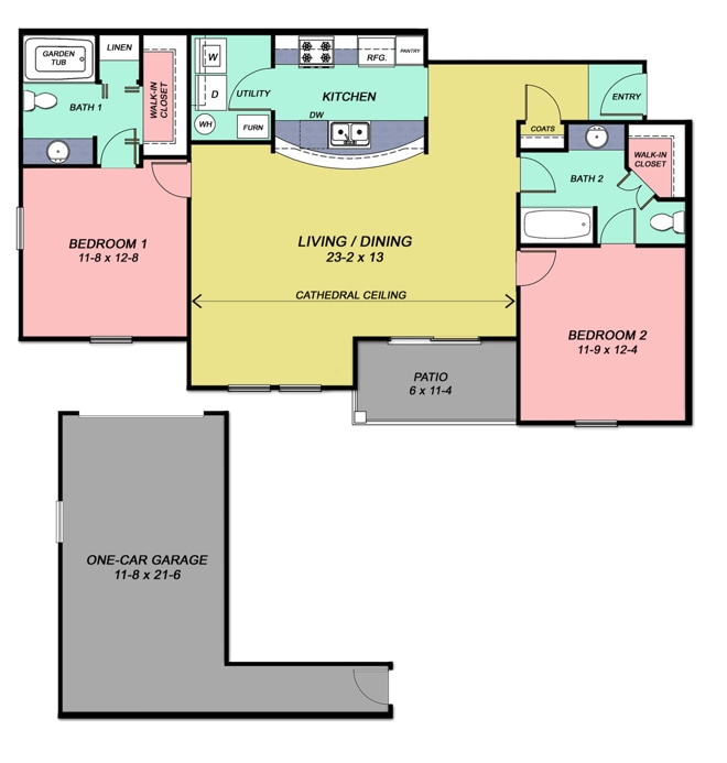 1 Bed, 1 Bath, 871-874 sq ftAvailable NowLargest 1 BedroomThis is the largest 1 Bedroom at this PropertyModel Gallery
