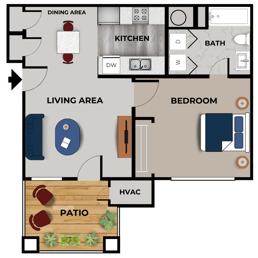 1 Bed, 1 Bath, 620 sq ftModel Gallery