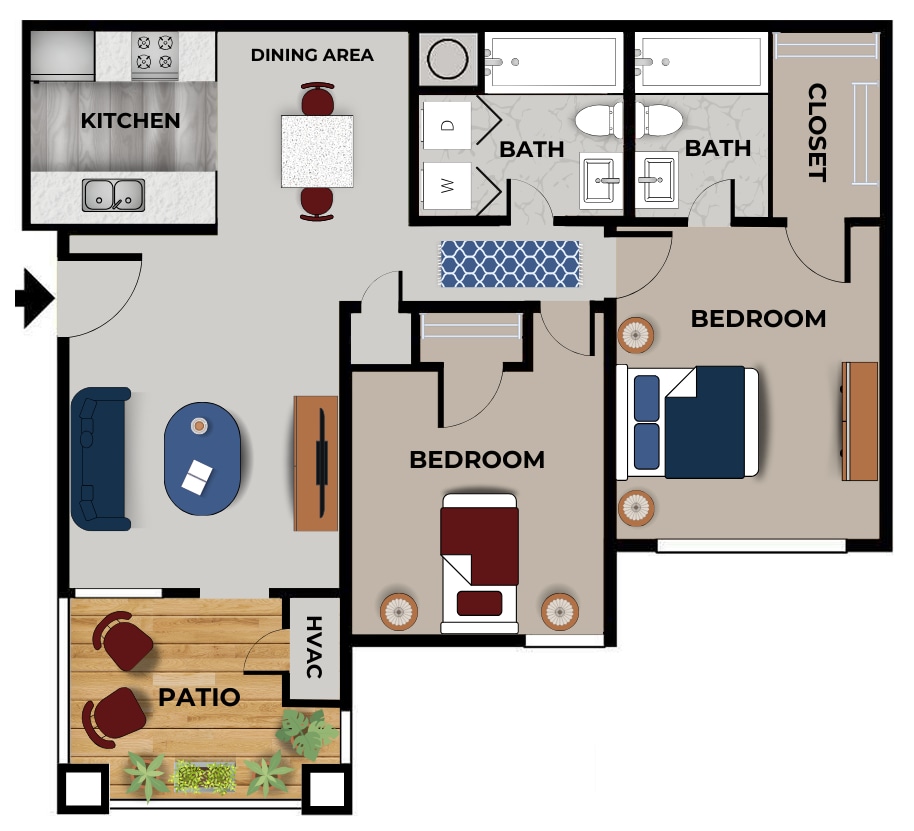 2 Beds, 2 Baths, 888 sq ftModel Gallery