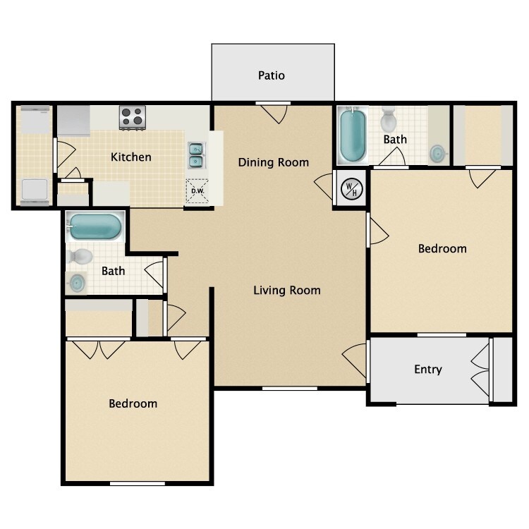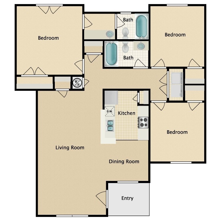 2 Bed 2 Bath - Floorplan 1 3 Bedrooms