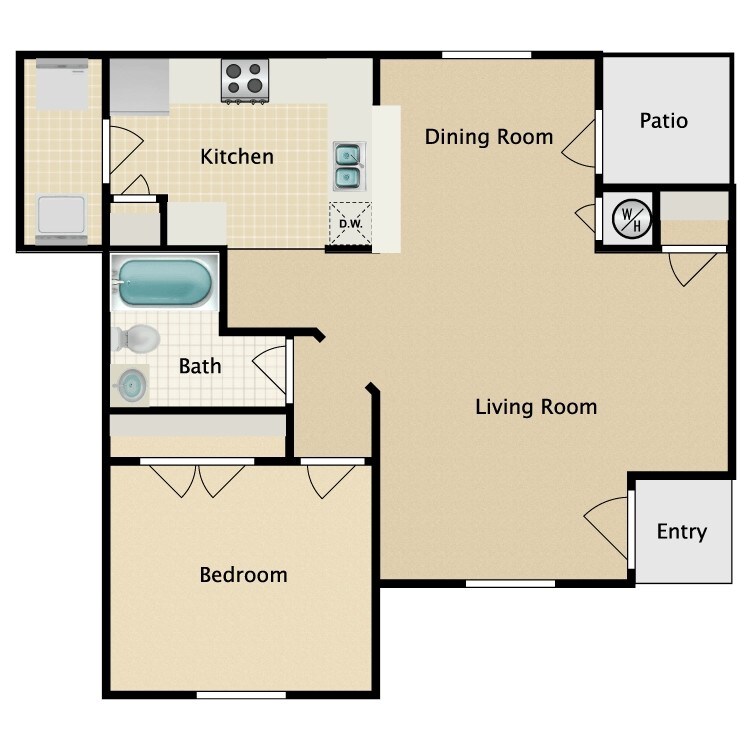 1 Bed 1 Bath - Floorplan 1 2 Bedrooms