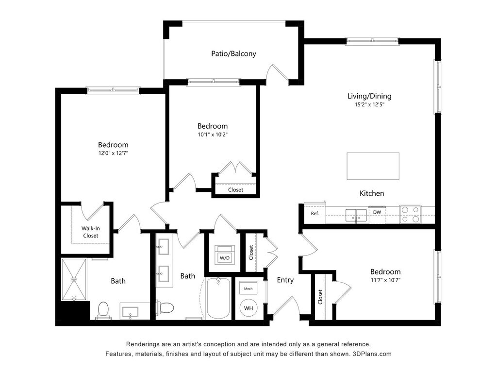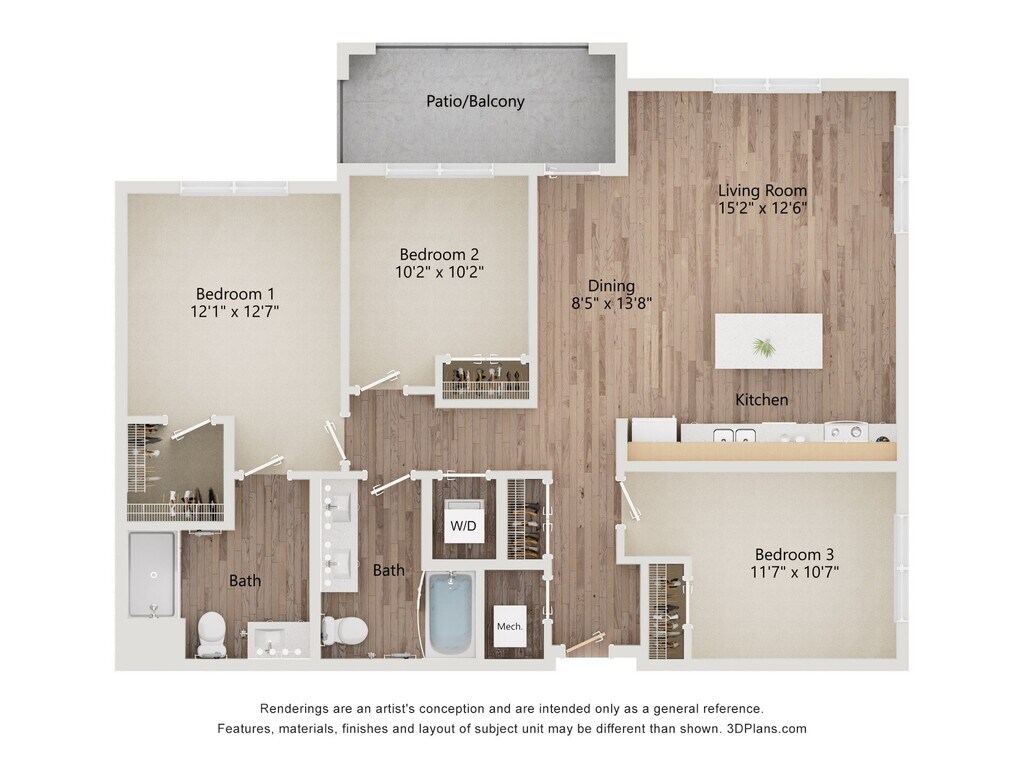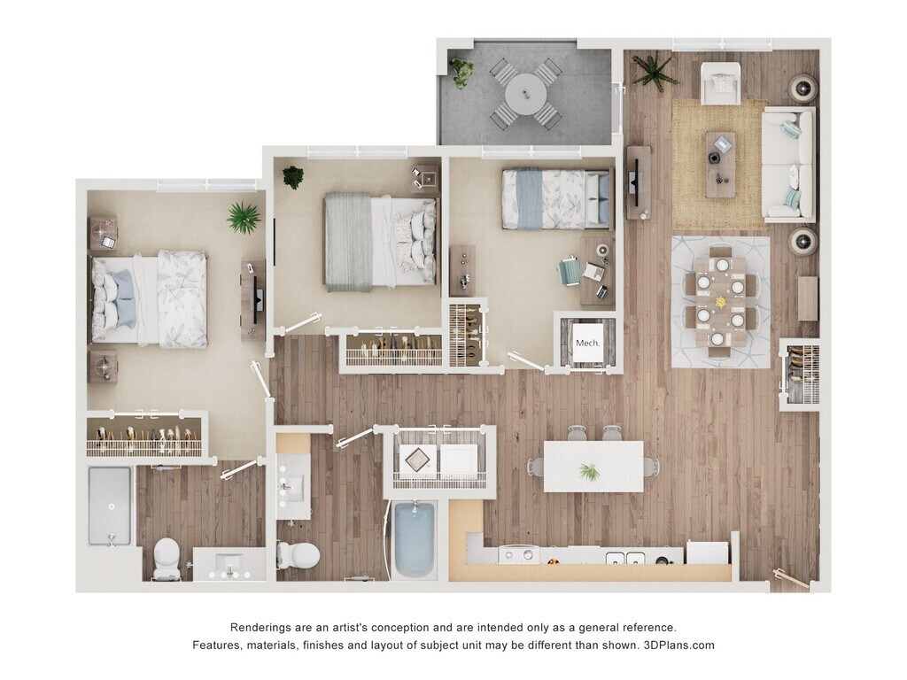 Apartment Model: 3AA (Wheelchair Accessible)From $1,6413 Bedroom, 2 Bath, 1220 sq ftAvailable June 25, 2027![]()