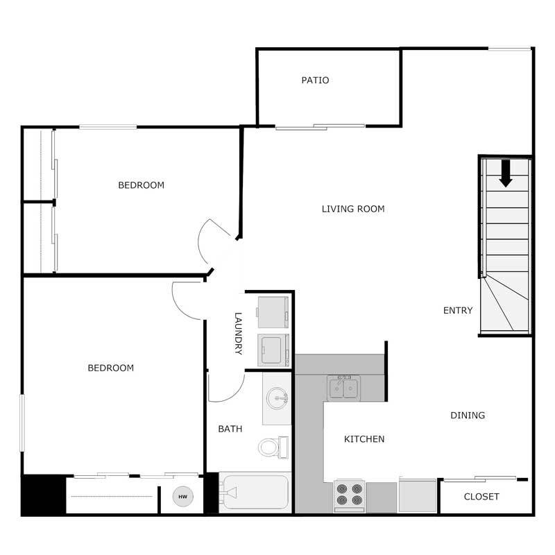 2 Bed 1 Bath - Floorplan 1 2 Bed 1 Bath