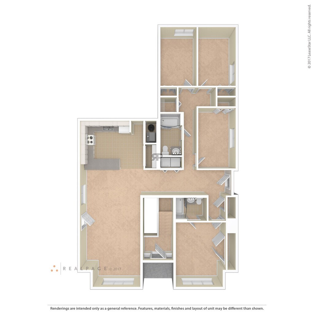 The Wells - Floorplan 3 Apartment Unit: 0042Apartment Model: The Wells4 Bedroom, 2 Bath, 1668 sq ftAvailable Now