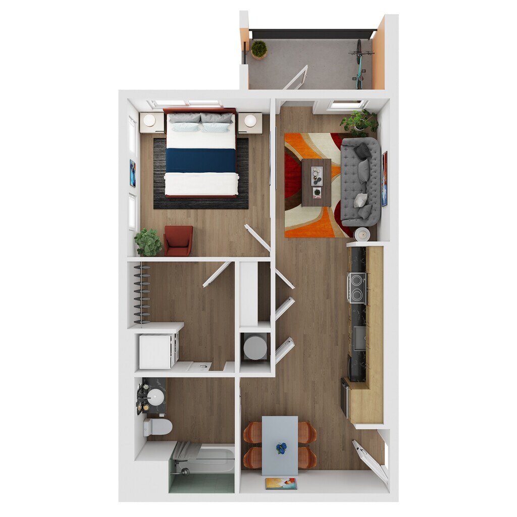 Lorax - Floorplan 1 Apartment Unit: 126Apartment Model: Lorax$1,1001 Bedroom, 1 Bath, 450 sq ftAvailable December 4, 2025Pedal Assist