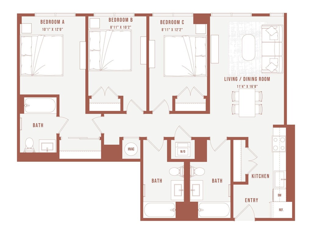 | Washington 3 Bedroom Apartments | $3,569 | $712 | $10,000+ |
