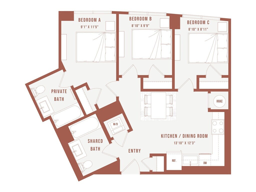 Apartment Model: Colette Co-Living F1.3$1,891Studio, 1 Bath, 401 sq ftAvailable NowFloor plans are artist's rendering. All dimensions are approximate. Actual product and specifications may vary in dimension or detail. Not all features are available in every rental home. Prices and availability are subject to change. Base rent is based on monthly frequency. Additional fees may apply, such as but not limited to package delivery, trash, water, amenities, etc. Deposits vary. Please see a representative for details.