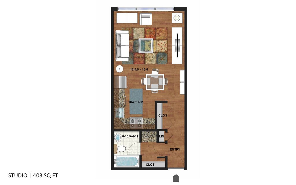 Studio, 1 Bath, 403 sq ftTotal Monthly PriceAvailable NowModel Gallery