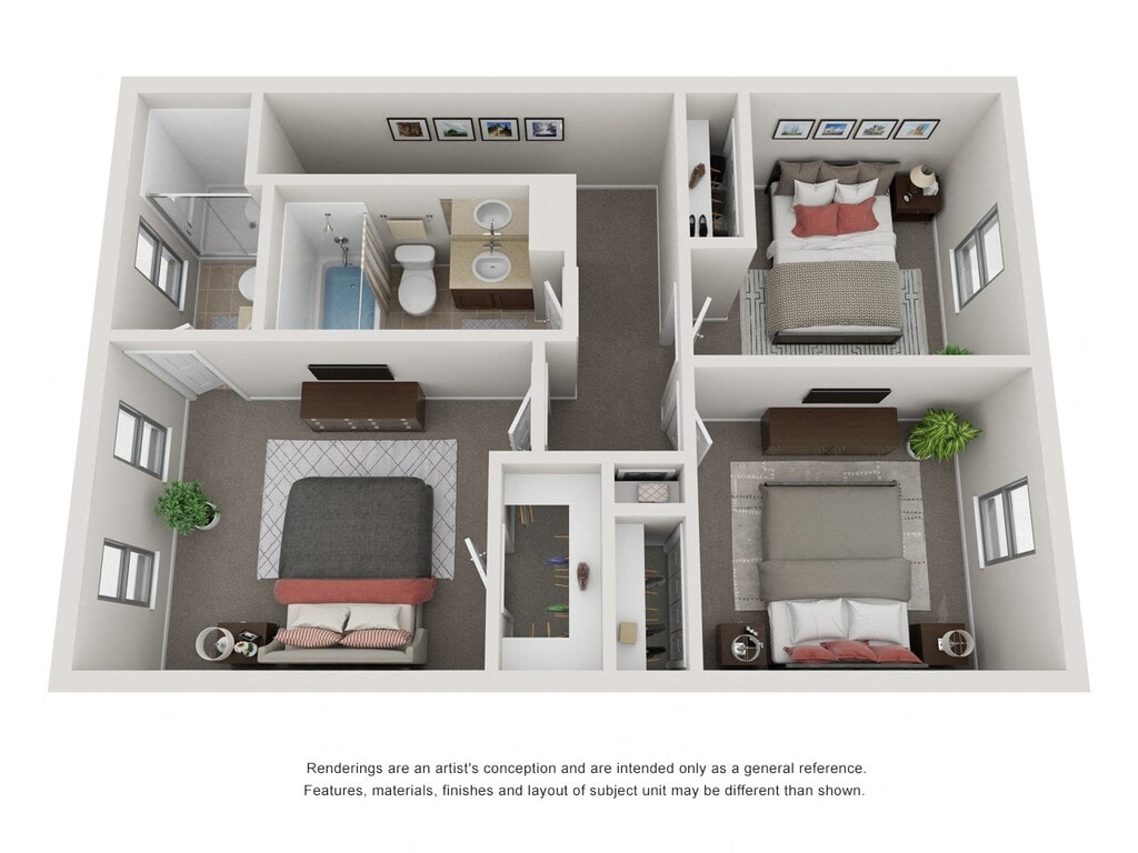Apartment Model: 3 Bed 2.5 BathCall For Rates3 Bedroom, 2.5 Bath, 1800 sq ftUnavailable3 Bed 2.5 Bath - Floorplan 1 3 Bed 2.5 Bath - Floorplan 2