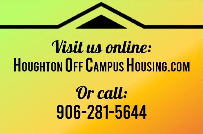 Information and Application available on the website: HoughtonOffCampusHousing[dot]com Applications open September 1 Leases offered November 1 Lease Dates: 5/11/24 - 5/25/25 ?(2024-25 leases are 13 months) Email: Contact[at]HoughtonOffCampusHousing[dot]com