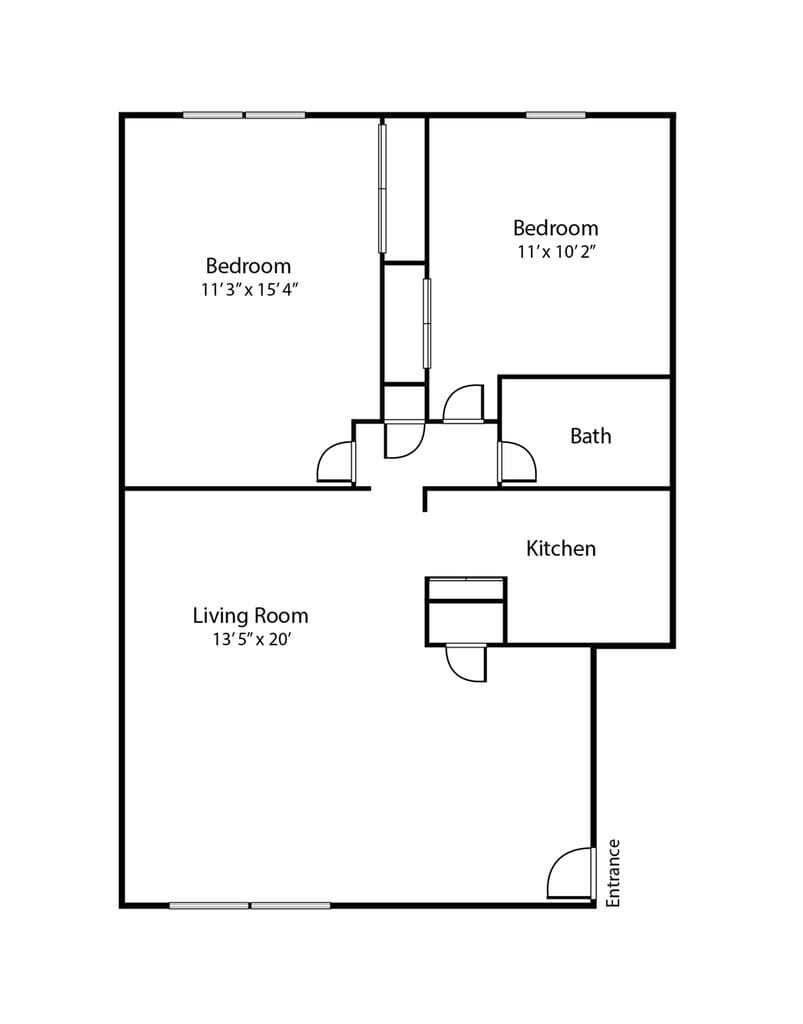 2 Bed/1 Bath - Floorplan 1 Apartment Unit: School House-S8Apartment Model: 2 Bed/1 Bath2 Bedroom, 1 Bath, 850 sq ftAvailable Now2 Bedroom (Newly Renovated)