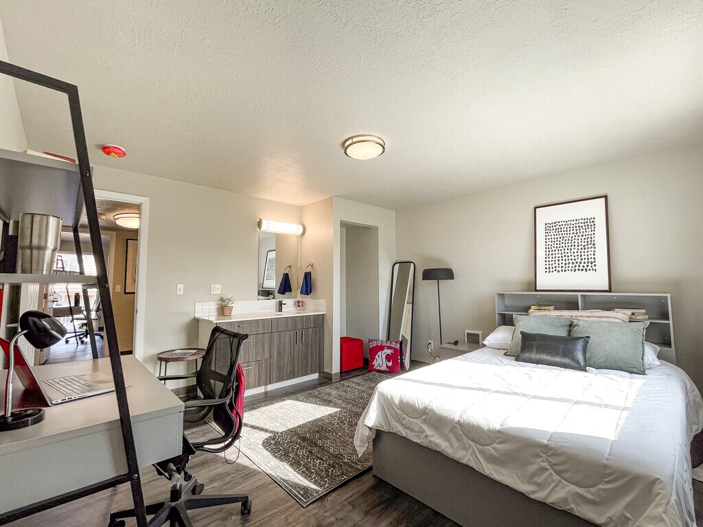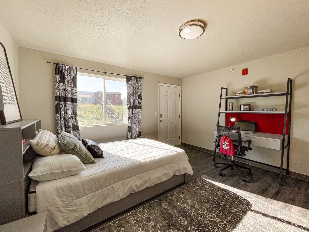 Looking for student apartments in Pullman near Washington State University? College Crest has you covered. Our pet-friendly community features studio, two-, and three-bedroom apartments designed with WSU students in mind. Whether you prefer furnished or unfurnished options, you'll enjoy upgraded kitchens, hardwood-style floors, and plenty of space. With a bus stop right outside, getting to WSU and all your favorite spots in Pullman is a breeze. Start exploring our available floor plans today!