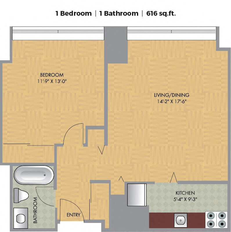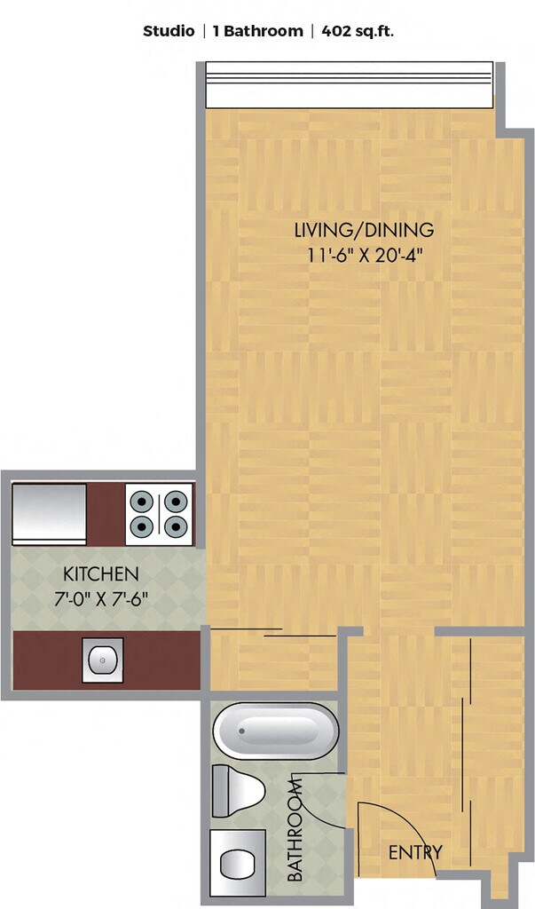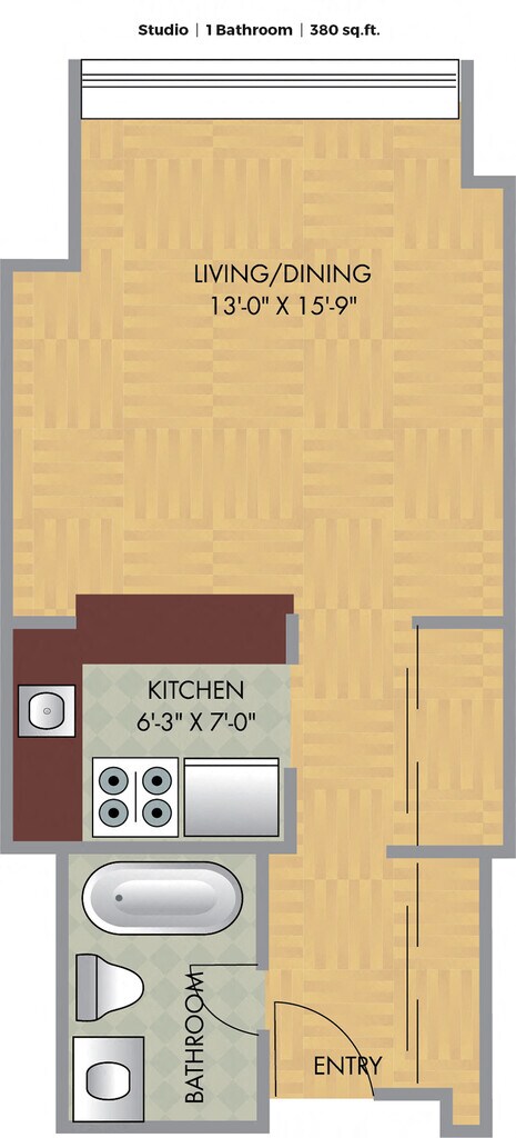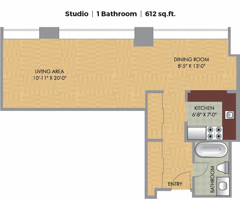 Studio, 1 Bath, 380-612 sq ftAvailable NowModel Gallery