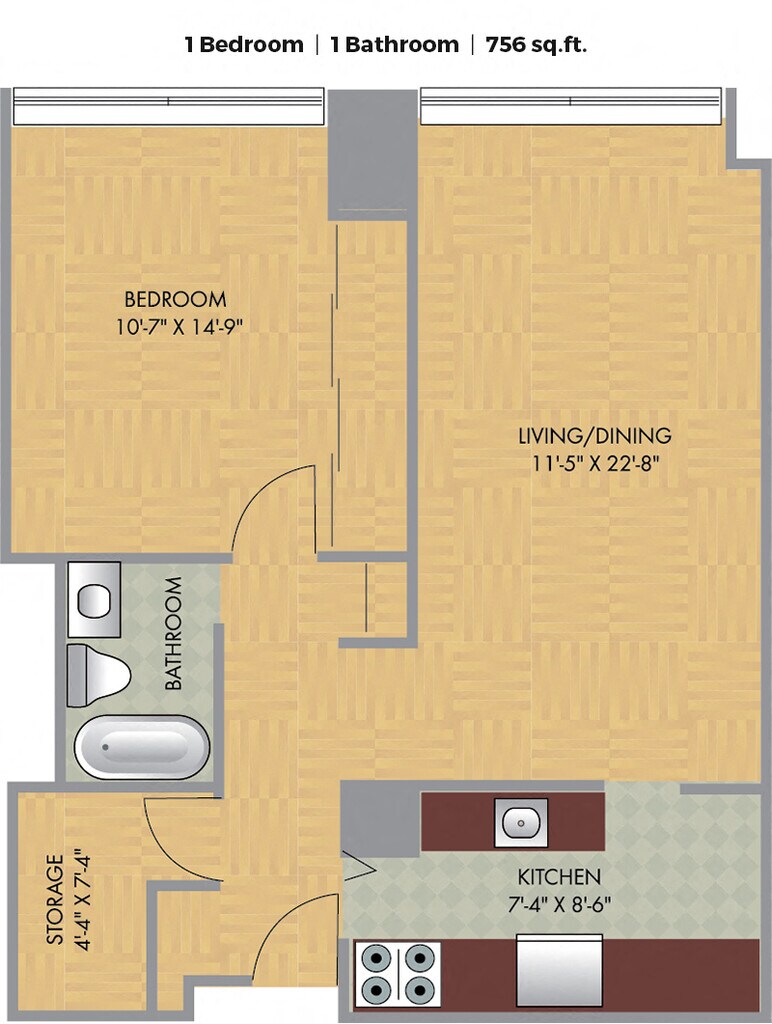1 Bedroom 1 Bath - Floorplan 4 ![]()