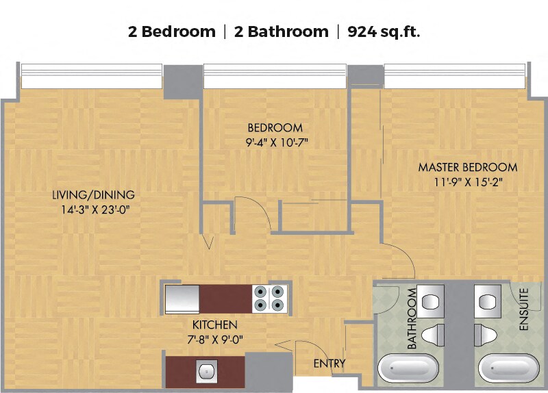 2 Bedroom 2 Bath - Floorplan 7 Apartment Unit: 0303Apartment Model: 2 Bedroom 2 Bath$2,8852 Bedroom, 2 Bath, 924 sq ftAvailable January 31, 2026