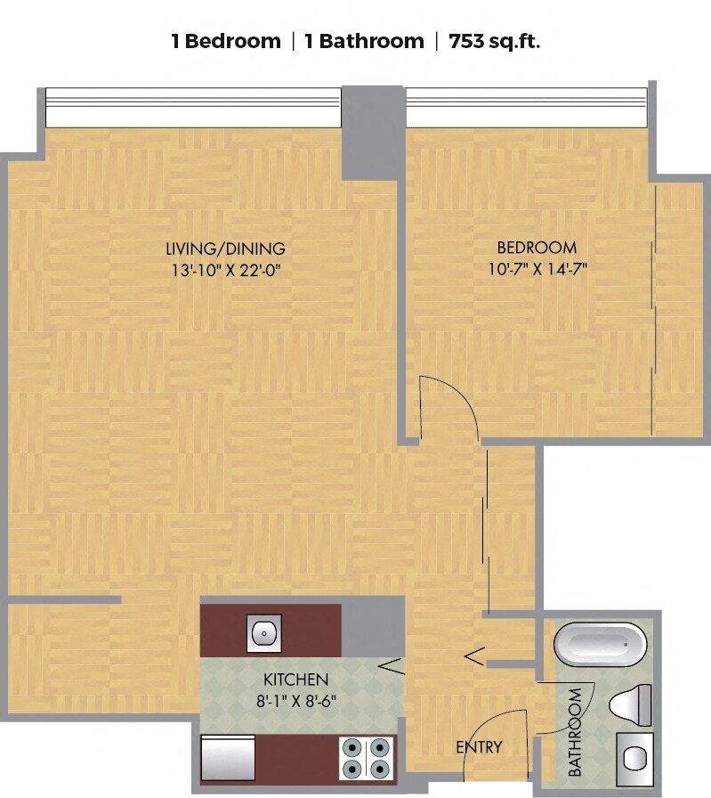 1 Bed, 1 Bath, 616-753 sq ftAvailable NowModel Gallery