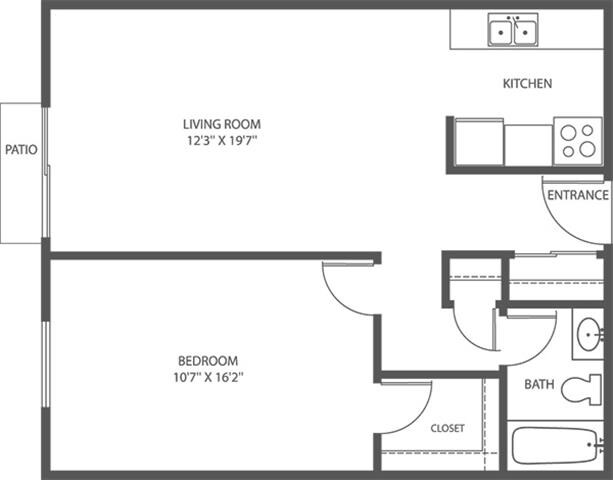 CS - 1 Bed, 1 Bath - 621sqft - Floorplan 1 CS - 1 Bed, 1 Bath - 625sqft