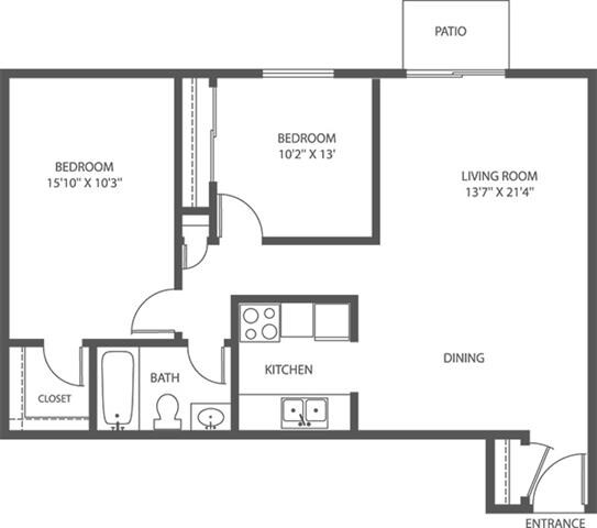 CS - 1 Bed, 1 Bath - 625sqft - Floorplan 2 2 Bedrooms