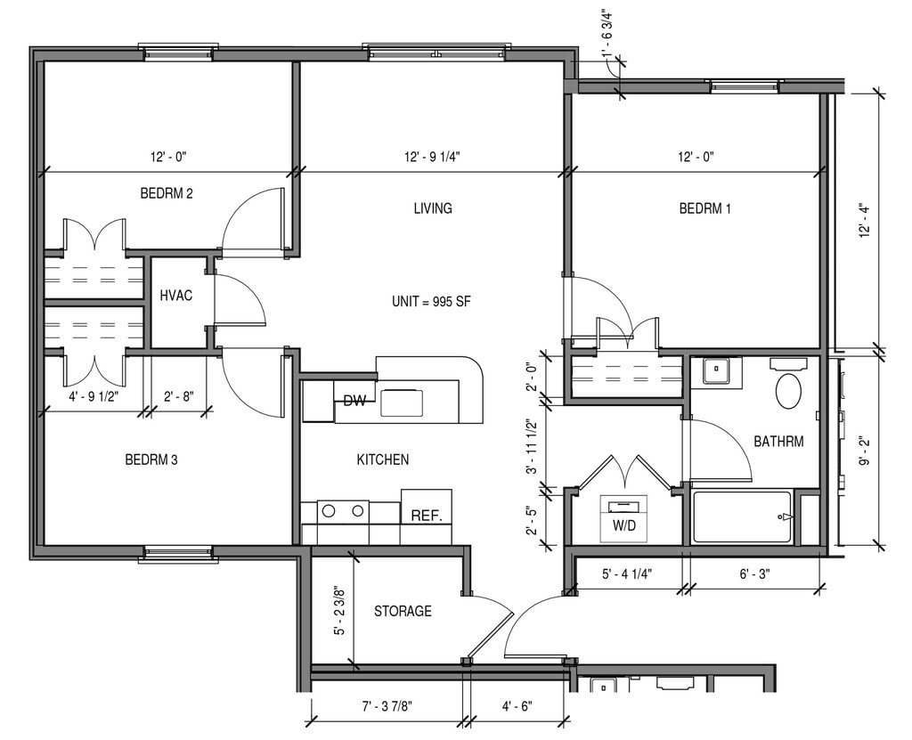 3 Beds, 1 Bath, 995-1020 sq ftAvailable NowModel Gallery