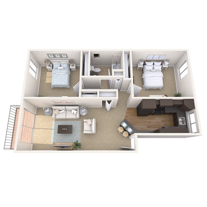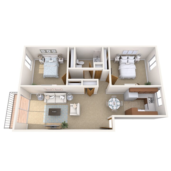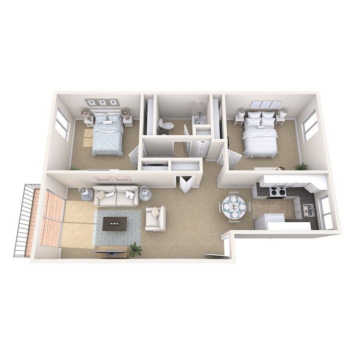 Apartment Model: 2 Bed 1 Bath for 2 People (Rate Per Person)2 Bedroom, 1 Bath, 850 sq ftUnavailable![]()