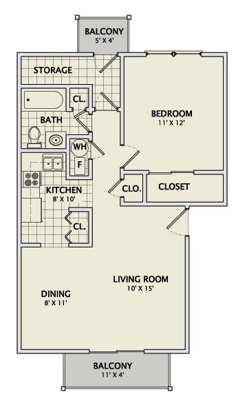 Apartment Model: 2 Bedroom - CC2 Bedroom, 1.5 Bath, 804 sq ftUnavailableFloorplansPhotos![]()