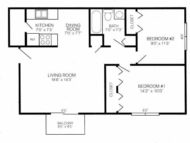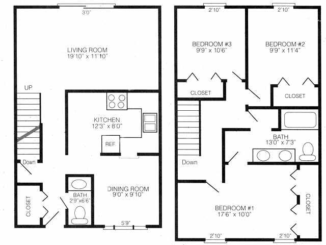 Apartment Model: 3 bed 1.5 bathFrom $1,0903 Bedroom, 1.5 Bath, 1598 sq ftUnavailable3 bed 1.5 bath - Floorplan 1
