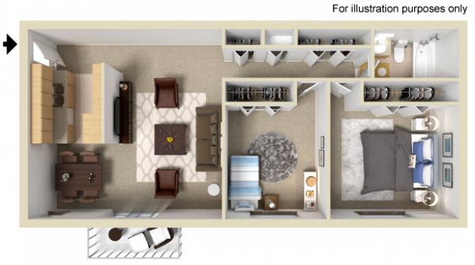 Furnished One Bedroom - Floorplan 1 2 Bedrooms