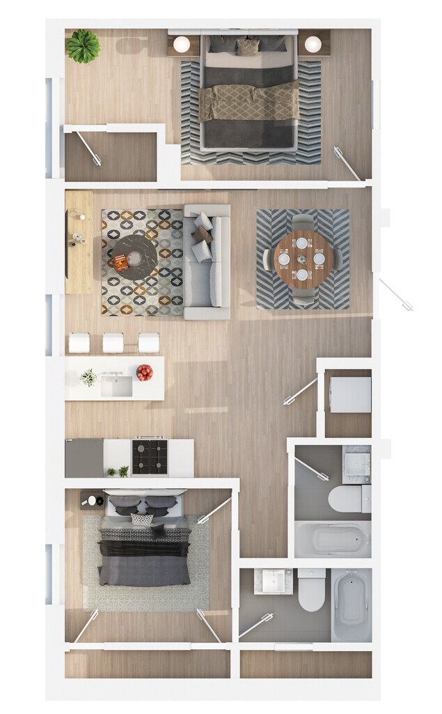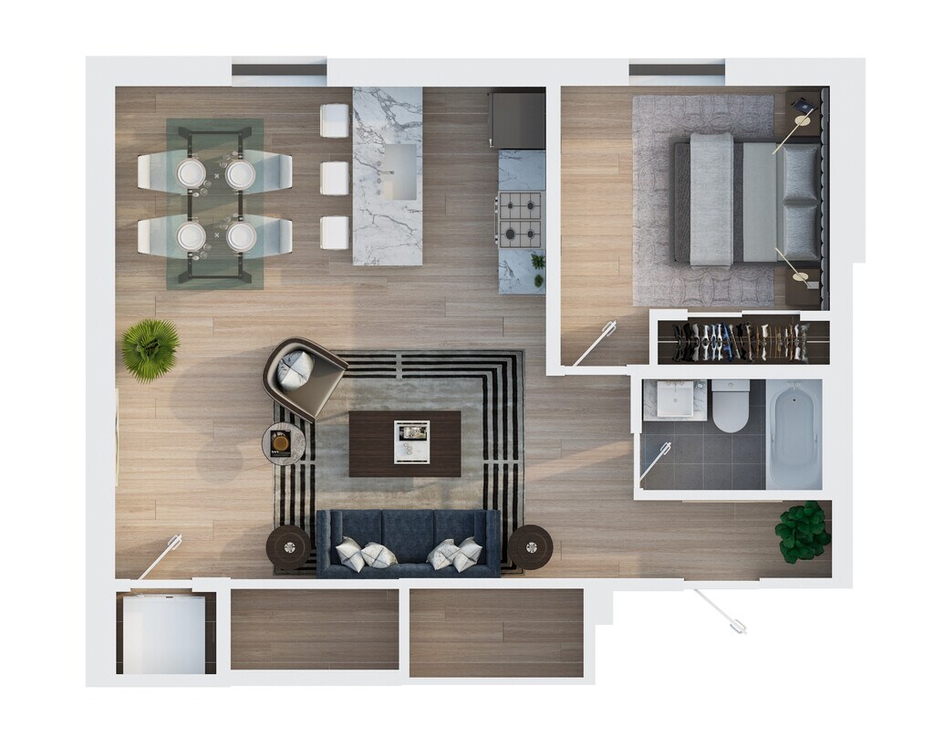 1 Bed, 1 Bath, 596 sq ftModel Gallery
