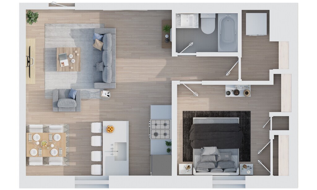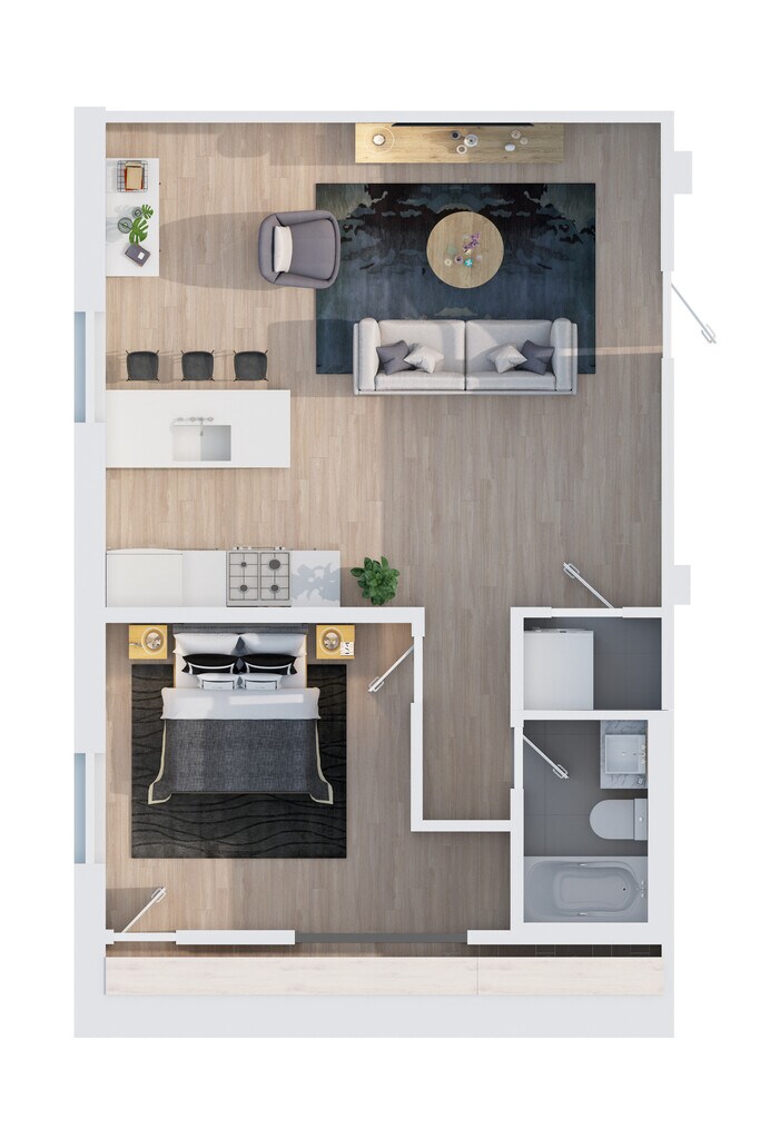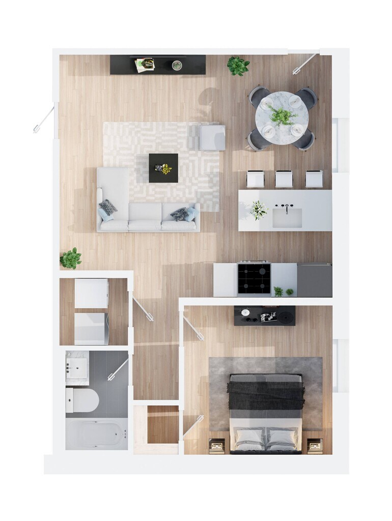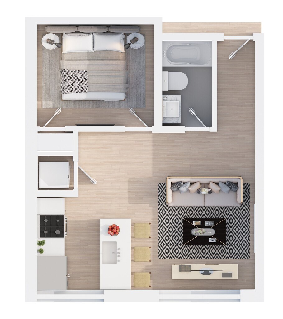 1 Bed, 1 Bath, 531 sq ftModel Gallery
