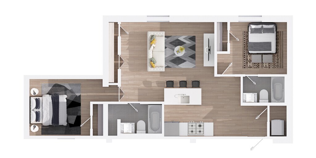 1 Bed, 1 Bath, 834 sq ftModel Gallery