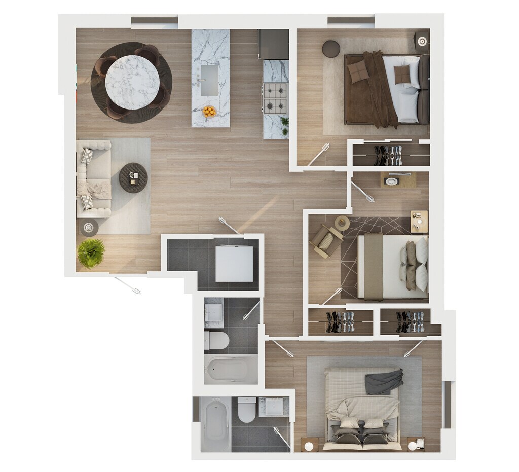 1 Bed, 1 Bath, 792 sq ftModel Gallery