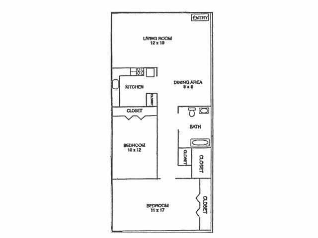 Apartment Model: 2 Bedroom2 Bedroom, 1 Bath, 811 sq ftUnavailableFloorplansPhotos![]()
