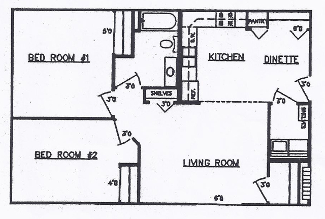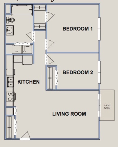 Apartment Model: 2x1 9502 Bedroom, 1 Bath, 950-1000 sq ftUnavailableFloorplansPhotos![]()