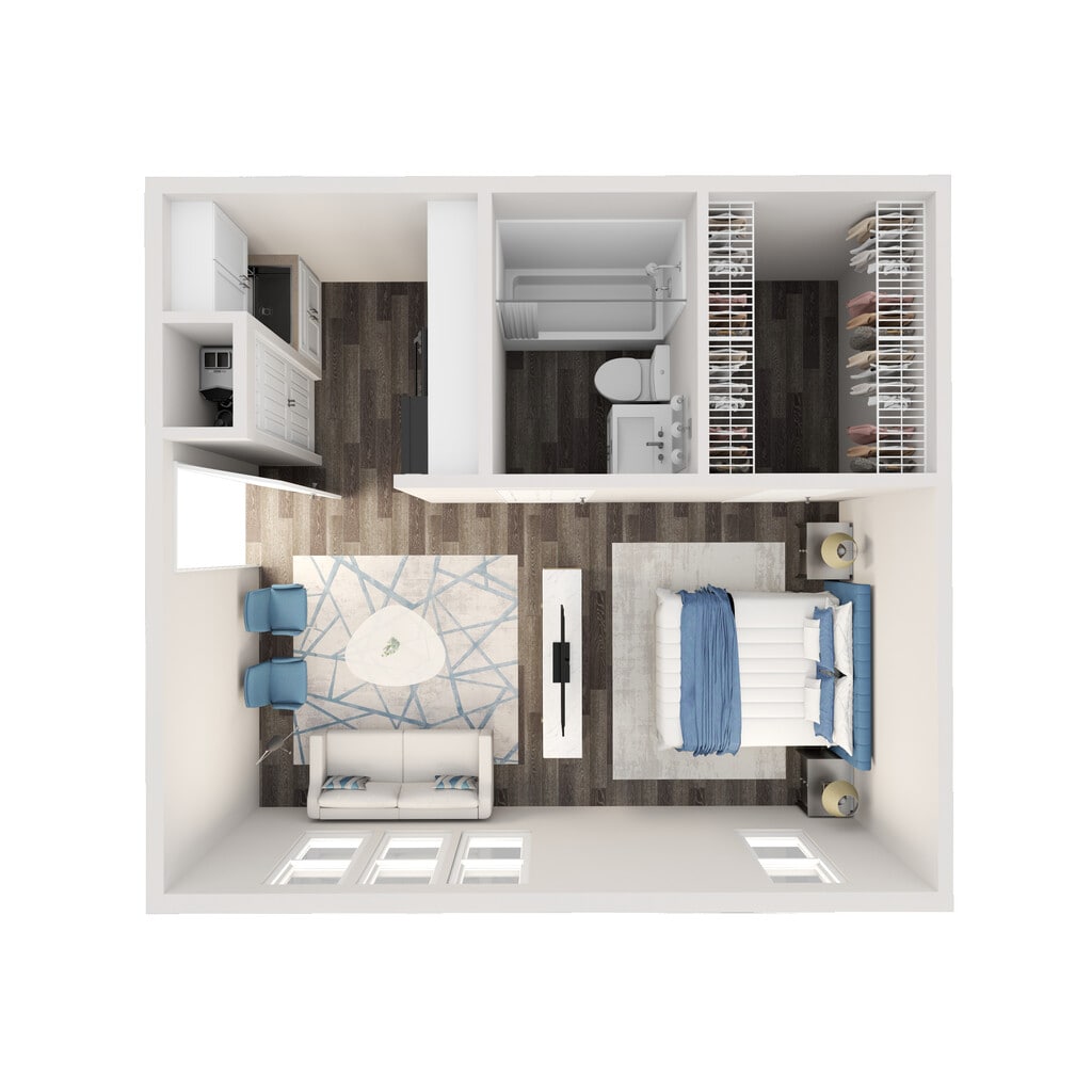 Studio, 1 Bath, 450 sq ftTotal Monthly PriceAvailable NowModel Gallery