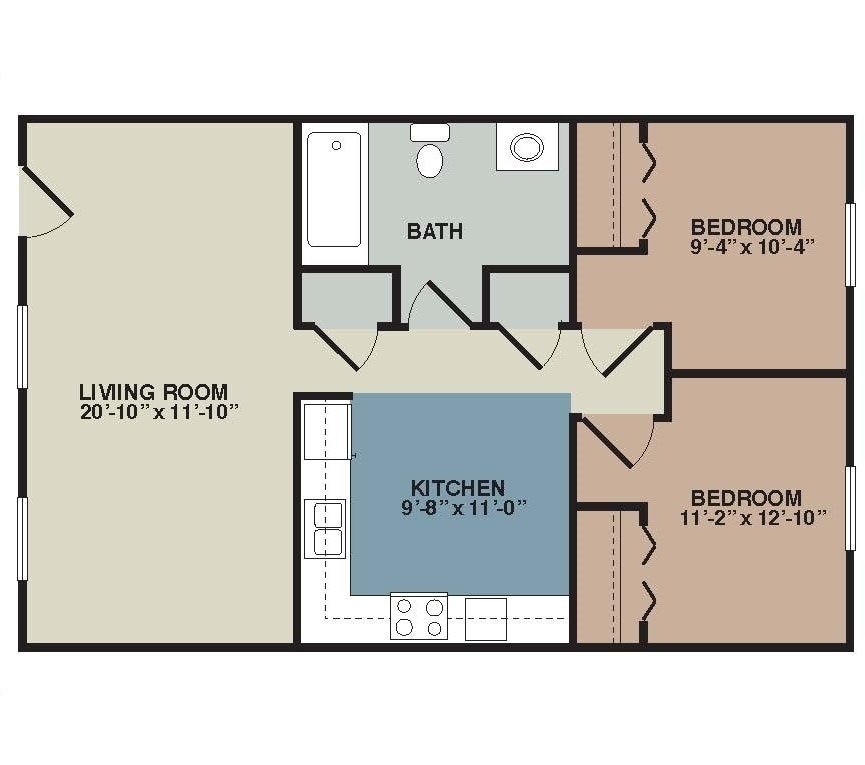 Apartment Model: Colonial: 4 Bedroom$1,2704 Bedroom, 1 Bath, 1100 sq ftUnavailable![]()