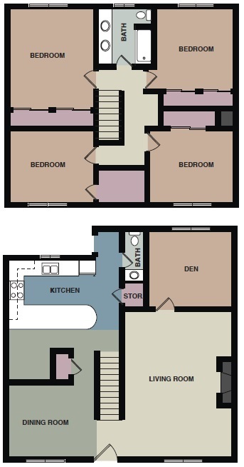 Colonial: 3 Bedroom - Floorplan 1 4 Bedrooms