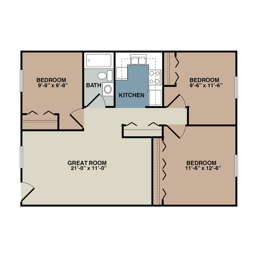 3 Beds, 1 Bath, 980 sq ftModel Gallery