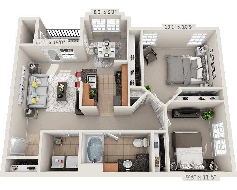 1 Bed, 1 Bath, 650 sq ftAvailable NowModel Gallery