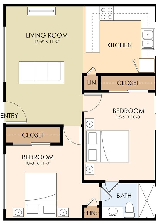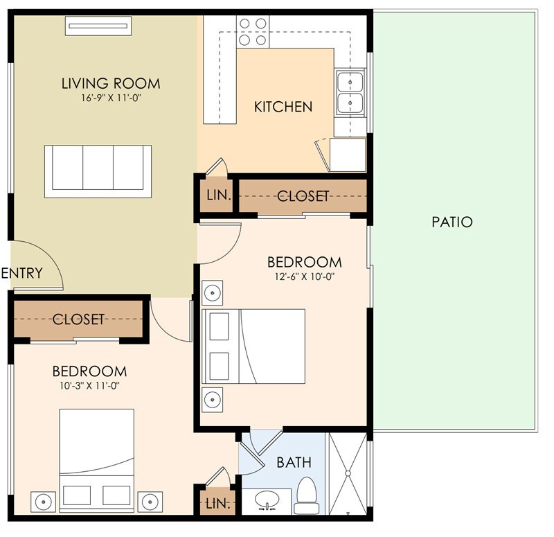 2 Beds, 1 Bath, 554-650 sq ftAvailability Details
