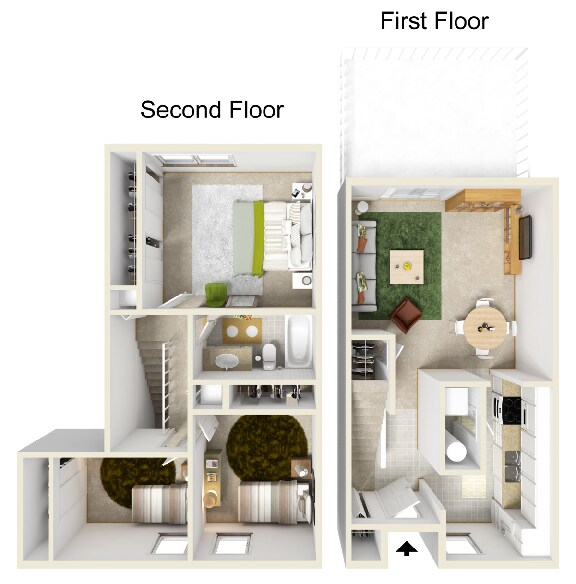 2 Beds, 1 Bath, 907 sq ftModel Gallery