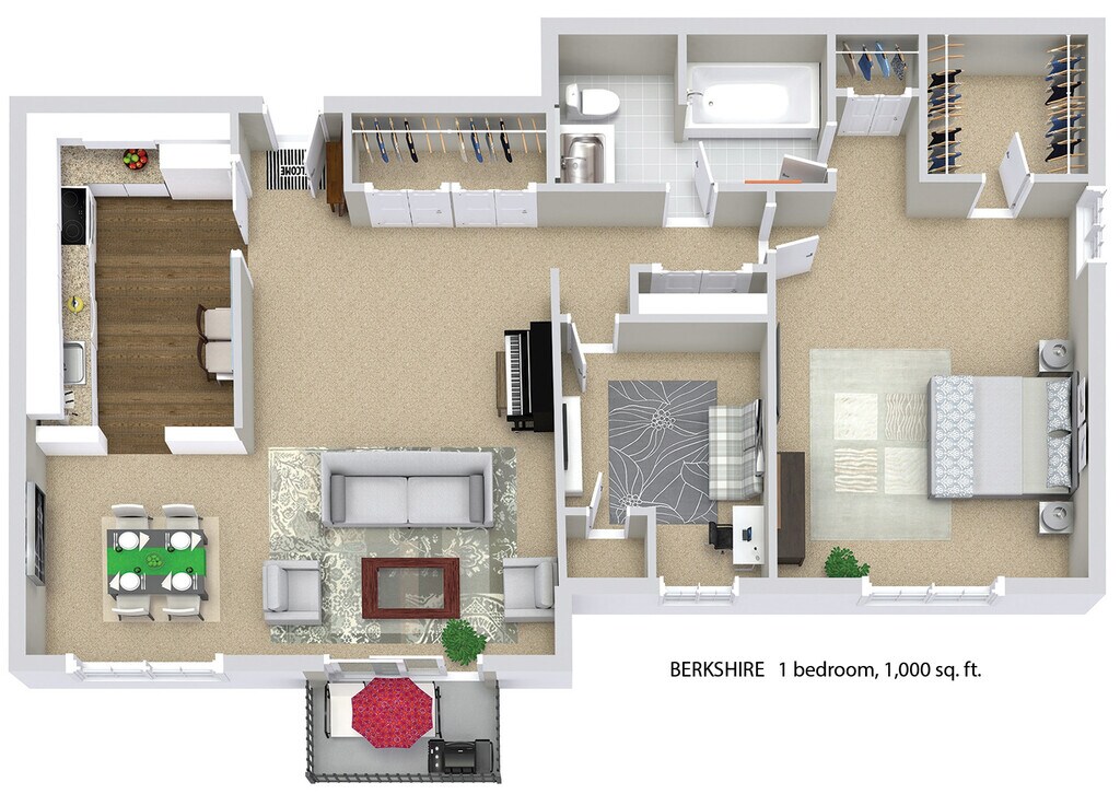 1 Bedroom 1 Bath - Floorplan 3 ![]()