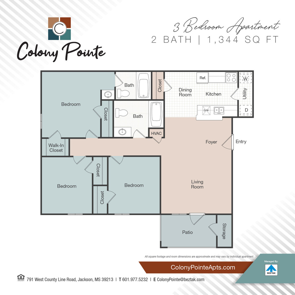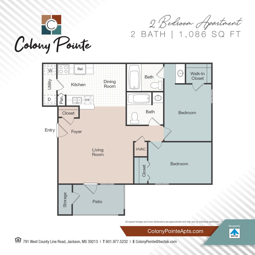 Colony Pointe is located in the North Jackson Neighborhood and 39213 Zip code of Jackson, MS. This community is professionally managed by BEZTAK Properties