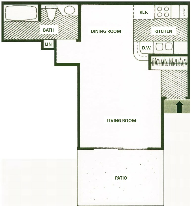 Studio (#1- includes electric) - Floorplan 1 1 Bedroom