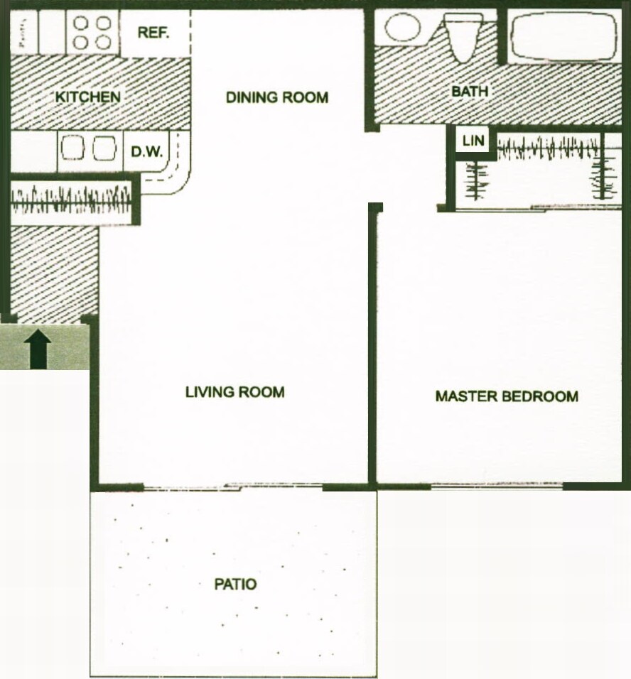 Apartment Model: 1 Bedroom, 1 Bath w/ PatioFrom $1,8001 Bedroom, 1 Bath, 675 sq ftAvailable Now![]()