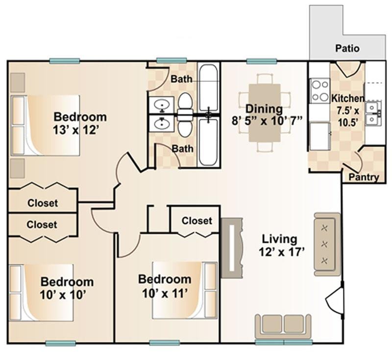 3 Beds, 2 Baths, 1042 sq ftAvailable NowAvailability Details