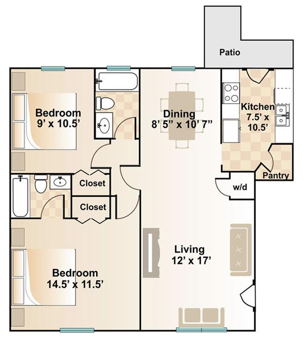 2 Beds, 2 Baths, 864 sq ftAvailable NowModel Gallery